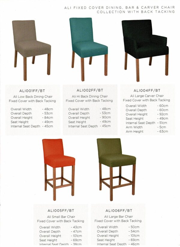 Ali Fixed Cover Dining Chairs, Barstools & Carver Chair