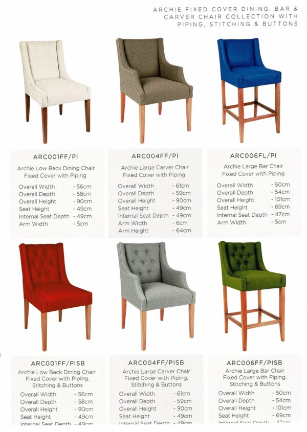 Archie Fixed Cover Dining Chairs, Barstools & Carver Chair
