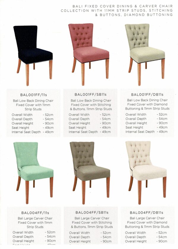 Bali Fixed Cover Dining Chairs, Barstools & Carver Chair