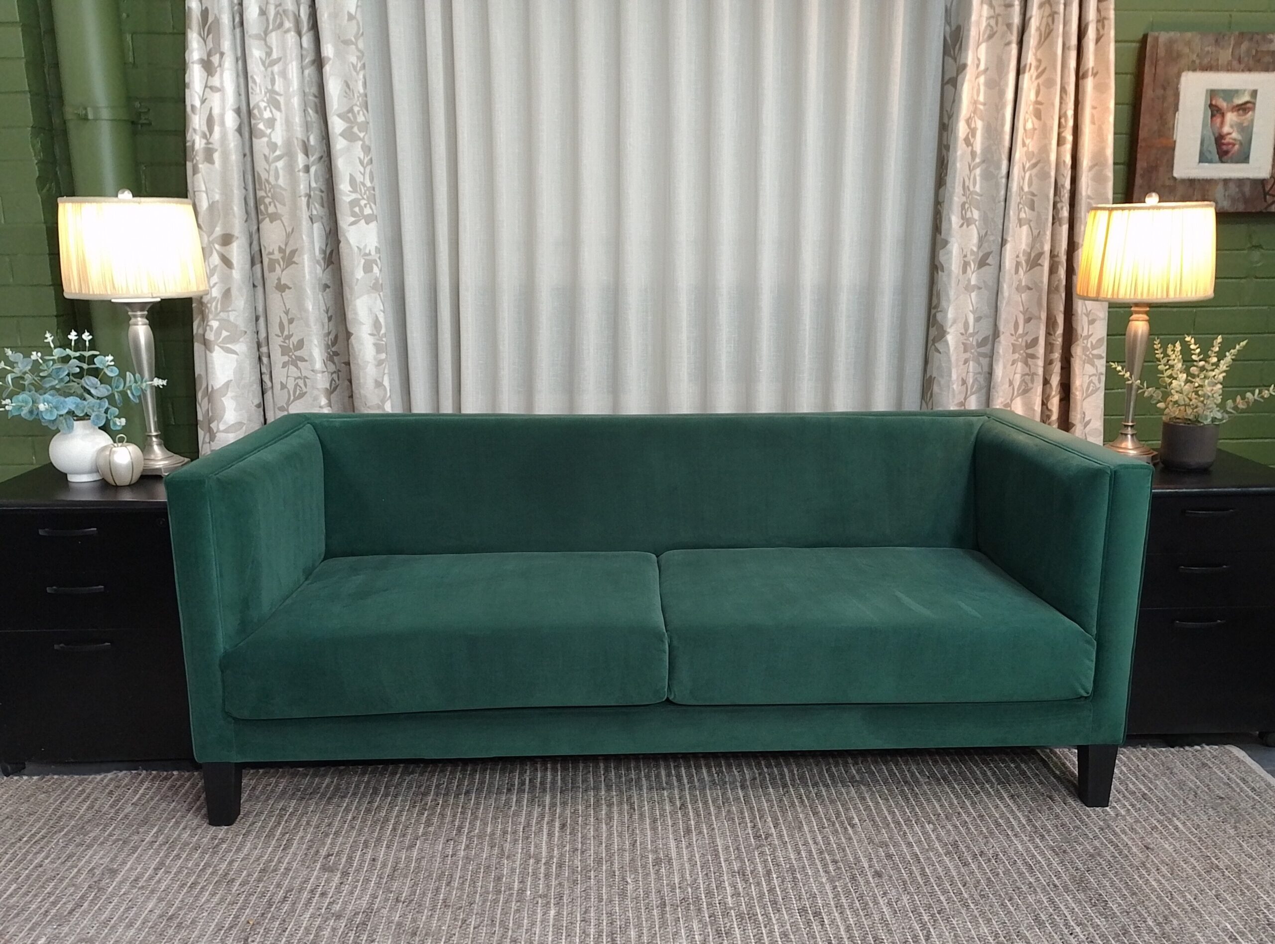 3 Seater (duo) 1,900mm x 850mm deep with narrow square arm and piping