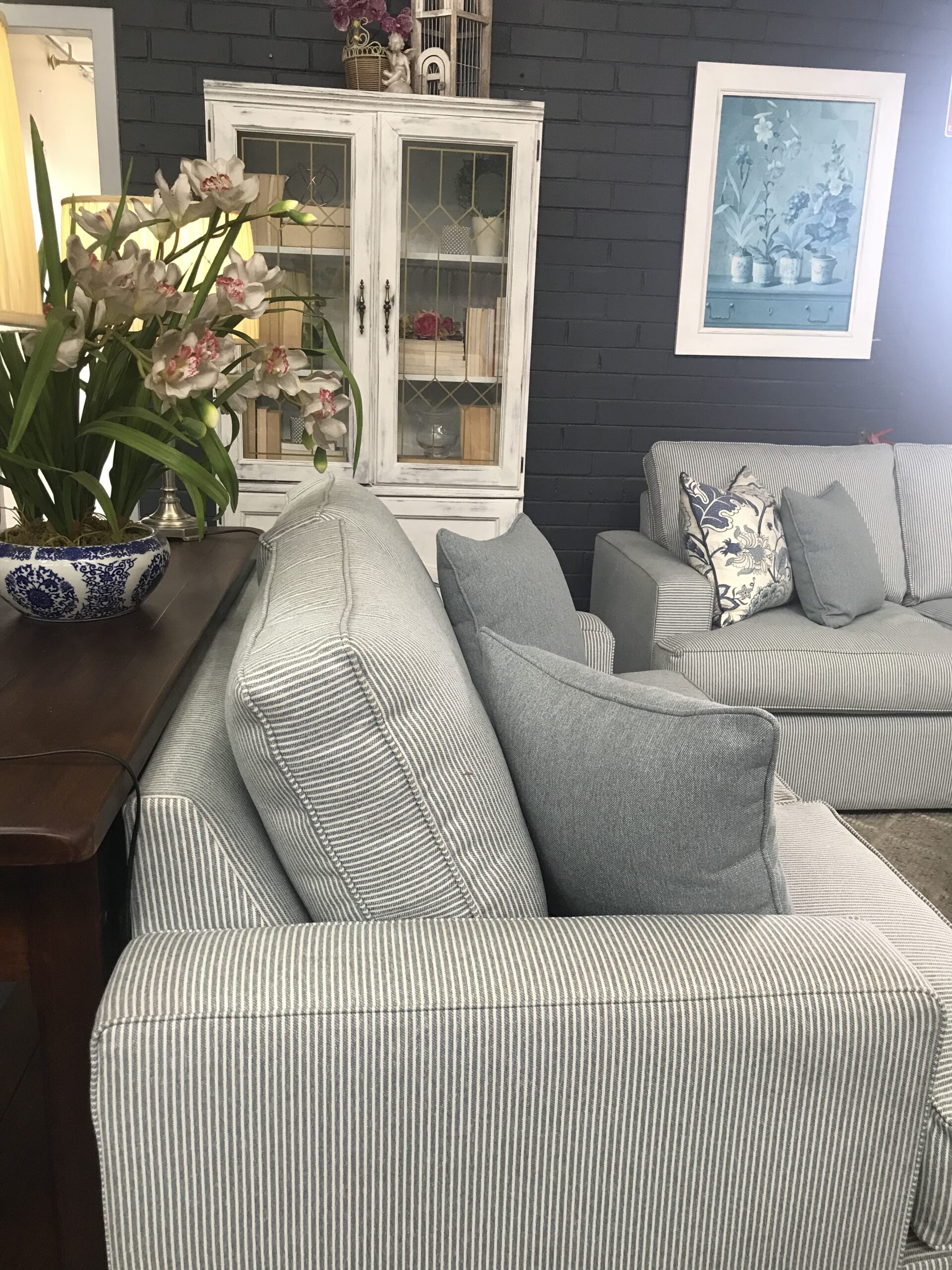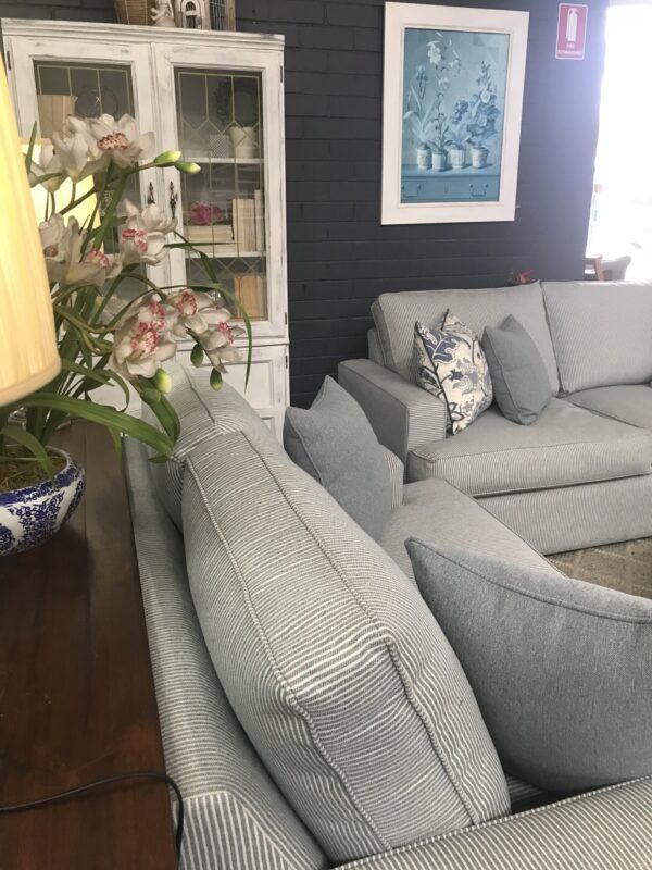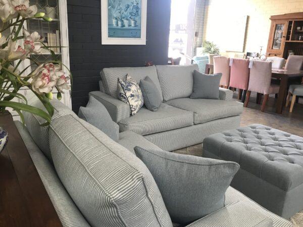 Deep sofa with luxurious feather seat cushions, can be made to specific dimensions