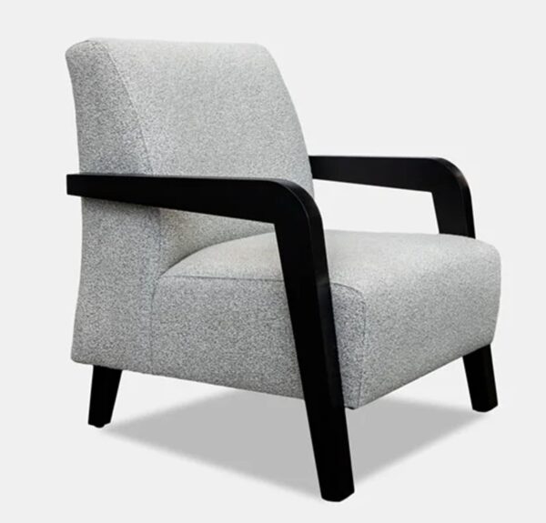 Elegant by design, the Savoy chair blends crisp structure with plush texture to create a presence that’s both refined and inviting. The gently contoured backrest and generous seat are upholstered in a beautifully textured boucle, offering softness and warmth that contrasts effortlessly with the bold silhouette of the timber arms.